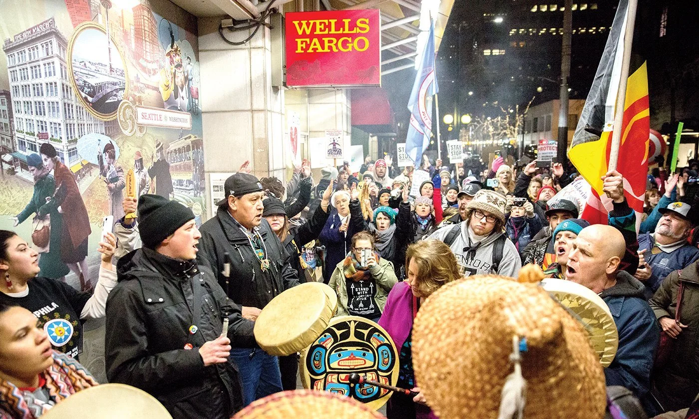 NoDAPL action targeting Wells Fargo. Seattle 2016. Photo by Alex Garland.